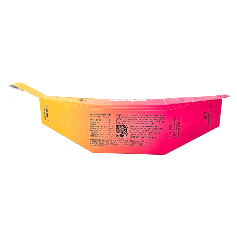 Ingredients: Banana, Rice Bran Oil, Milk Solids, Sugar, Salt, Cheese Powder, Corn Starch, Edible Fat, Anticaking Agent (E551), Flavour Enhancers (E627 & E631), Acidity Regulators (E330), Antioxidant(E319).